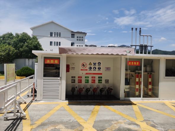 加油區(qū)設(shè)置加油罩棚,罩棚下設(shè)置3臺(tái)雙油品四槍潛油泵式加油機(jī)(汽油)和1臺(tái)雙油品雙槍加油機(jī)(柴油);埋地罐區(qū)設(shè)有5只臥式埋地單層油罐(采用防滲罐池),其中30m3汽油罐4只、30m3柴油罐1只,折算后油罐總?cè)莘e135m3(柴油罐折半計(jì)入),根據(jù)《汽車(chē)加油加氣加氫站技術(shù)標(biāo)準(zhǔn)》GB50156-2021的相關(guān)規(guī)定,該站屬于二級(jí)加油站。加油站已安裝汽油卸油和加油油氣回收系統(tǒng)。